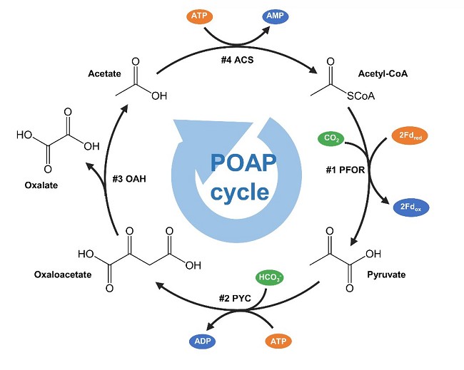 The POAP cycle functions under relatively high temperature (50°C) and anaerobic conditions, so it may provide a novel model for understanding and investigating CO2 fixation in ancient organisms. The POAP cycle also provides an alternative pathway for biologically converting carbon dioxide into useful chemicals.