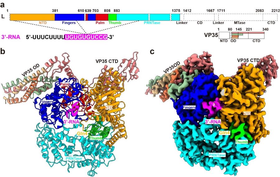 Figure 1 Overall structure of EBOV L-VP35-RNA complex (Image by SHI Yi)