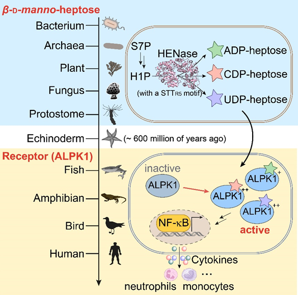 Figure: Organisms of different kingdoms can synthesize β-d-manno-heptoses that are sensed by vertebrate immune receptors. (image by Prof. CHEN Yihua’s group)