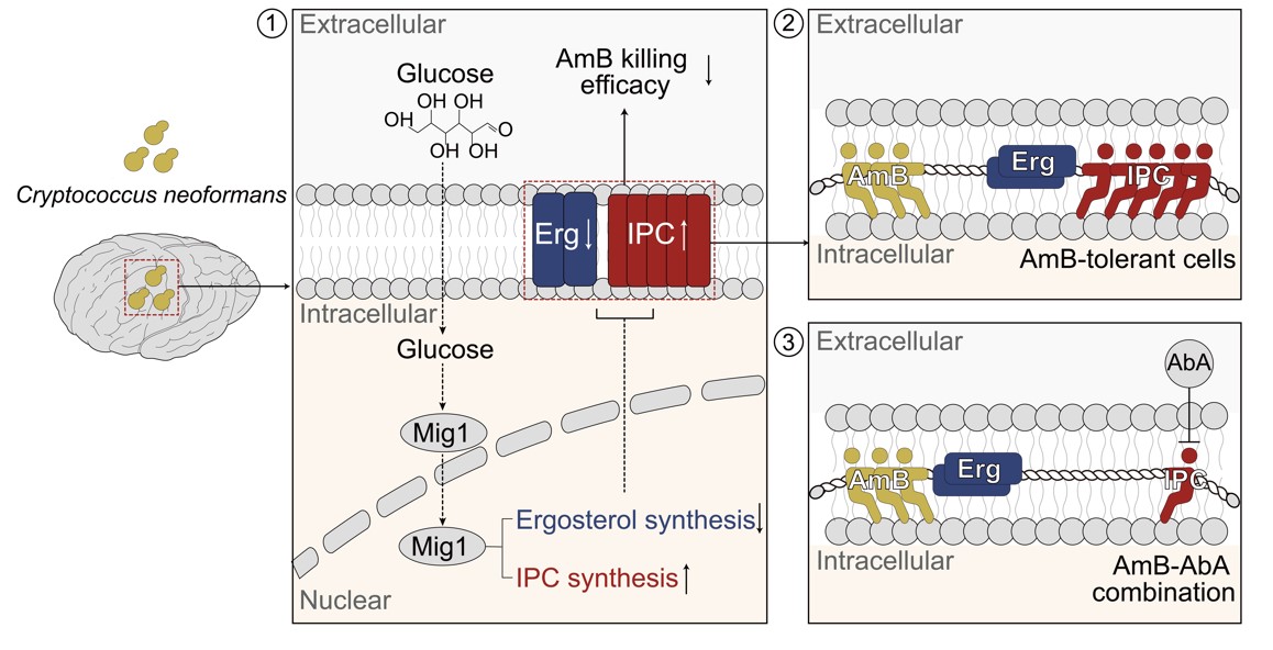 Microbicide persistence prolongs antimicrobial therapy, leading to relapse after cessation of therapy. By developing single-cell tracking strategies, IMCAS scientists demonstrate that Cryptococcus neoformans can form fungicide-tolerant persisters during lung infection, uncover mechanisms involved, and identify indicator molecules whose abundance in the cryptococcal cell is predictive of fungicidal efficacy. These findings provide evidence for and the determinant of AmB-tolerant persister formation in pulmonary cryptococcosis, which has potential clinical significance.